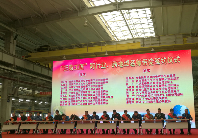 叱培洲被省委、省政府授予2018年“三秦工匠”,是省委、省政府2018年命名的20名“三秦工匠”中唯一的一名高校教师。在这次科技节动员会上,举行了“三秦工匠”跨行业跨地域名师带徒签约仪式,叱培洲与中国飞行试验研究院电焊工、技师张登峰签署了师带徒培养协议。(黄跃翔)