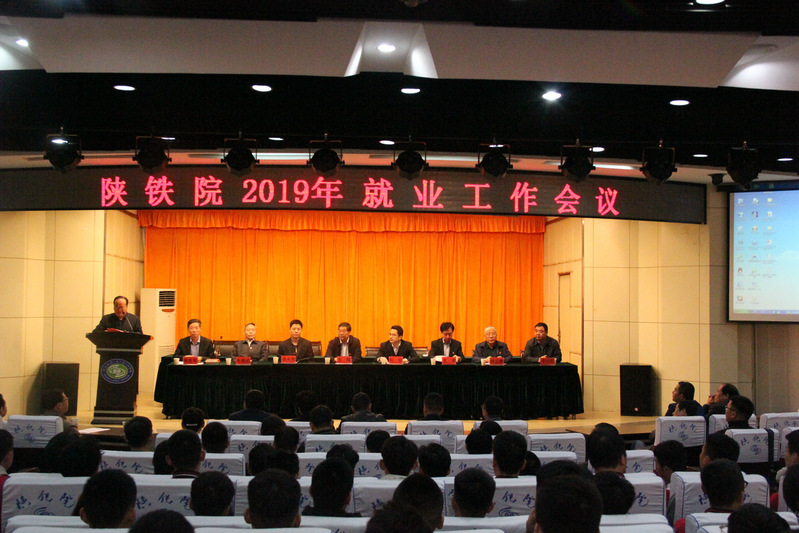 4月9日下午,陕铁院在临渭校区学术报告厅召开2019年就业工作会议。学院党委书记王晖,院长王津,党委副书记车绪武,党委副书记、纪委书记杨云峰,副院长焦胜军、李林军,就业指导中心、教务处、学生处负责人,各系党总支书记、学工办主任、辅导员、班主任以及学生代表参加了会议。会议由就业指导中心负责人主持。