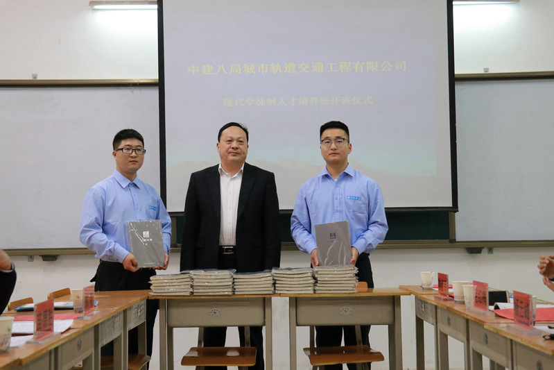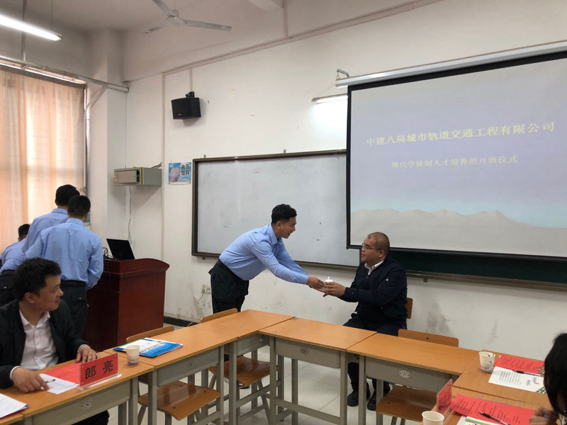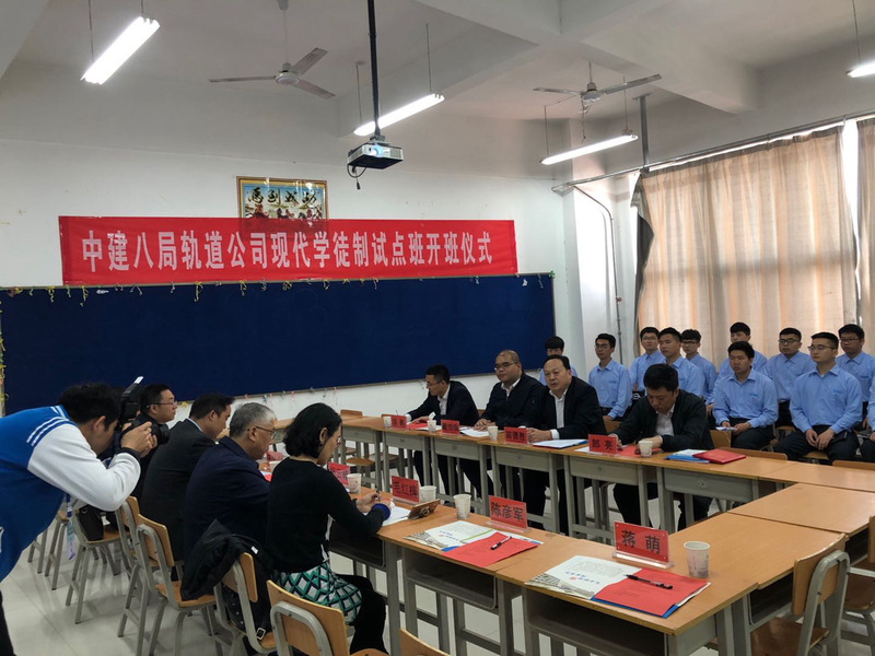 4月11日上午,中建八局轨道公司现代学徒制试点班开班仪式在高新校区GB630教室召开,校、企、学生三方签订了合作协议。这已是该公司与学院的第二次合作。中建八局轨道公司党委副书记、工会主席苗德胜,副总工程师戴佳临,人力资源部经理郎亮,人力资源部副经理段鹏;学院党委副书记杨云锋,教务处、校企合作处、轨道工程系主要负责人以及现代学徒制32名学员参加开班仪式。轨道系党总支书记姜留涛主持开班仪式。
