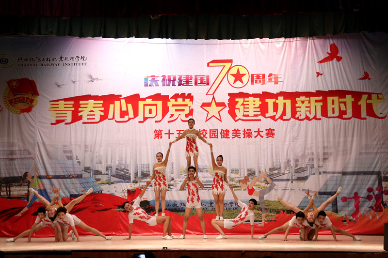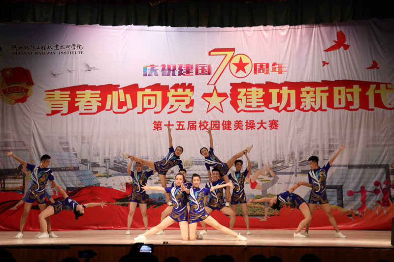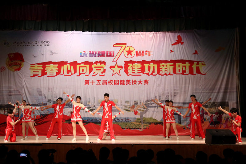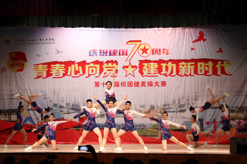 为庆祝新中国成立70周年,4月16日、17日晚,学院分别在高新、临渭两校区文体中心举行了“青春心向党 建功新时代”的第十五届校园健美操大赛。