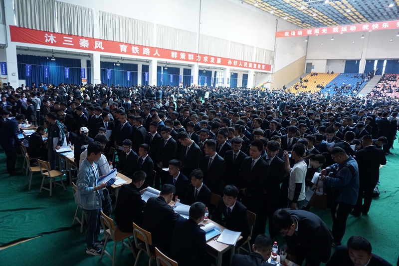 本次大型招聘会吸引了中铁一局集团、中铁三局集团、中铁六局集团、中铁七局集团、中铁十一局集团、中铁十四局集团、中铁十七局集团、中铁二十局集团、中铁二十三局集团、中铁北京工程局、中铁上海工程局、中铁广州工程局、中铁建工集团、中交一公局、中交二公局、中交隧道局等80余家央企来院招聘,共计4000多个岗位。招聘会上,2000余名毕业生踌躇满志,将自己的精心准备的简历递交到心仪的企业单位,同时与单位负责人积极交流。各单位招聘负责人从公司情况、主营业务、薪资待遇、职业规划以及需求人数等方面为毕业生耐心解答,双方互动交流,现场火爆。学院领导亲临现场,为同学们加油打气。