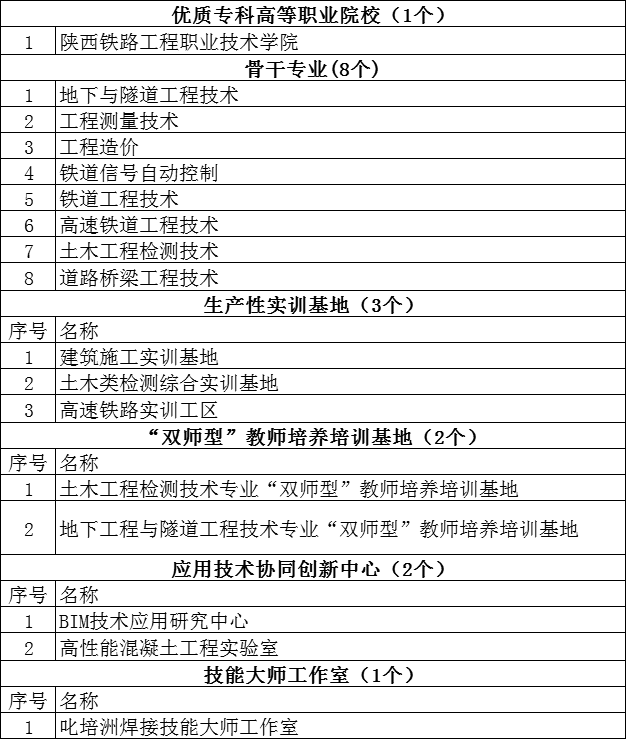 4月28日,陕西省教育厅发布关于对《高等职业教育创新发展行动计划(2015—2018年)》推荐项目公示的公告,学院优质高等专业院校、骨干专业、生产性实训基地、 “双师型”教师培养基地、应用技术协同创新中心、技能大师工作室共计17个项目获批教育厅推荐参加教育部评选,推荐总数位居陕西第三。