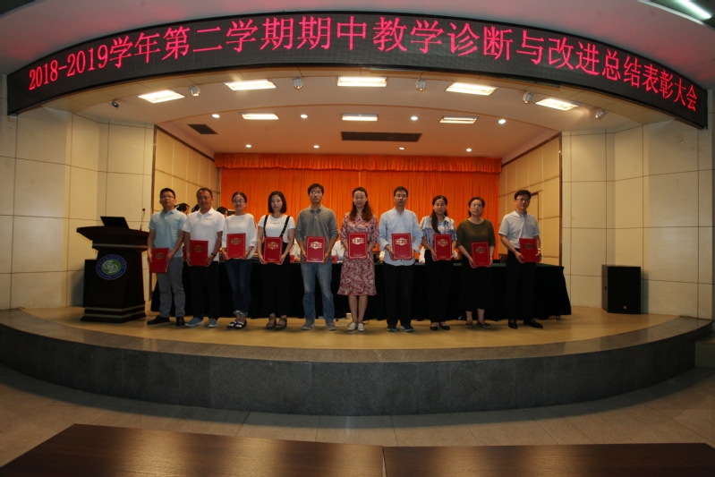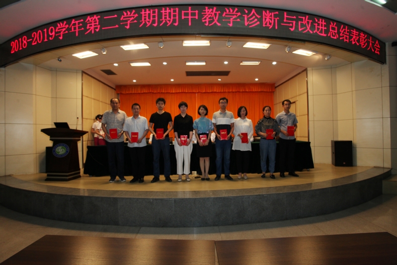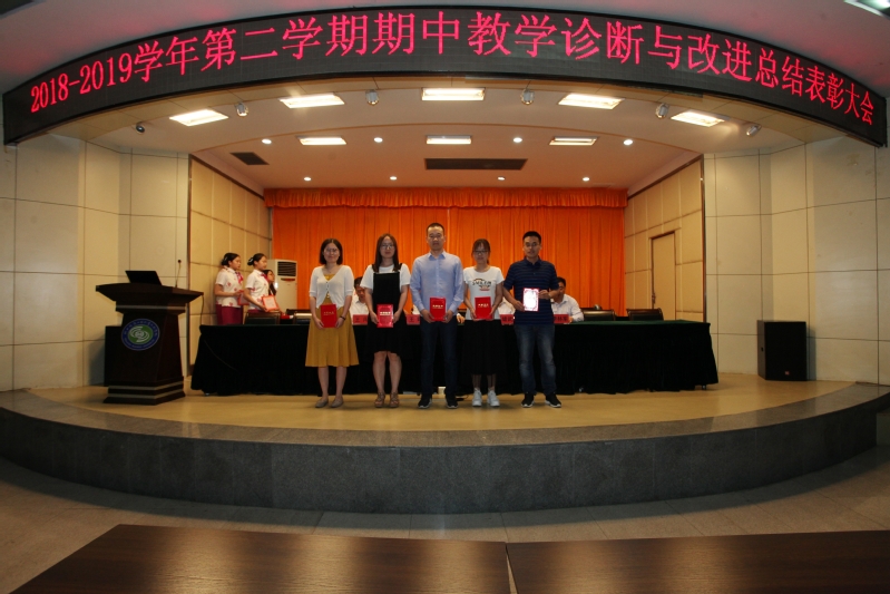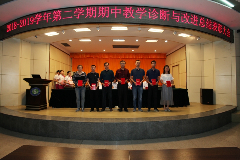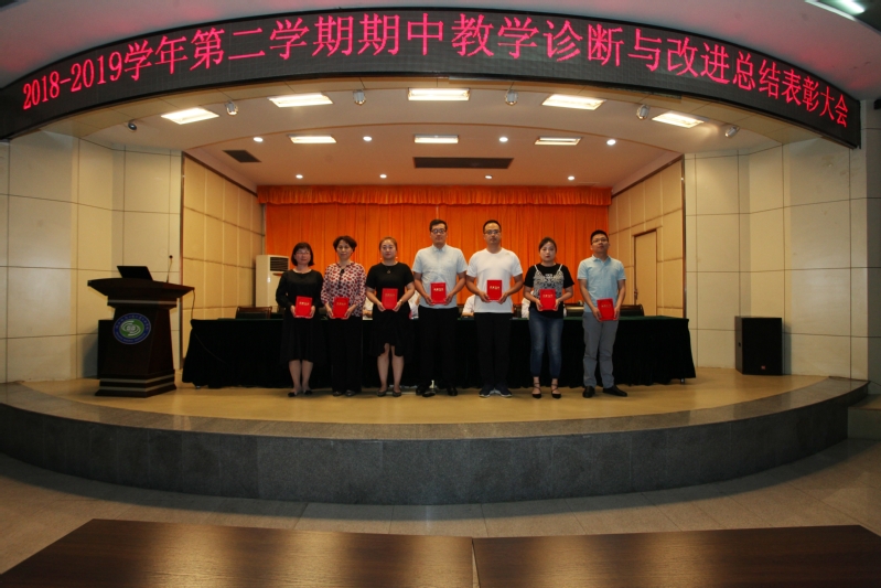 王闯宣读了《关于表彰学院2018-2019学年第二学期期中教学诊断与改进优秀项目的决定》、《2018年度标准实训基地(室)和优秀管理员的表彰决定》等文件,与会领导分别为优秀部门和个人进行颁奖。