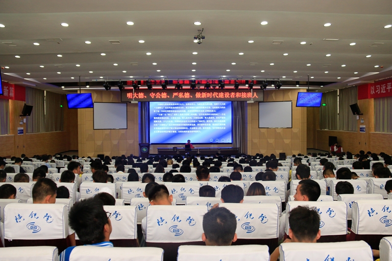 为了贯彻落实习近平总书记在全国教育大会上强调的“培养德智体美劳全面发展的社会主义建设者和接班人。把以德树人放在首位,把立德树人的成效作为检验学校一切工作的根本标准。”的讲话精神,依据十九大教育方针,在广大师生中弘扬劳模精神和工匠精神,结合自身的实际深入学习和贯彻,实现教书育人和自身修养相结合,做到以德立身、以德立学、以德施教,回归教师的本分和初心,实现教书育人的理想。根据学院关工委工作安排,联合学院党委教师工作部,学生工作部、学生处,5月11日下午,特邀陕西省教育关工委常务副主任、全国敬老爱老助老模范人物上官养志在学院高新校区博爱厅为师生做“明大德、守公德、严私德,做新时代建设者和接班人——立德树人”的专题报告。