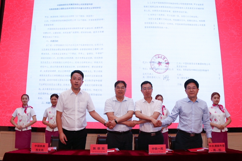 王晖代表学院与中铁一局集团公司、中国铁路西安局有限公司、中共渭南市委党校等领导代表共同签署了马院共建协议。