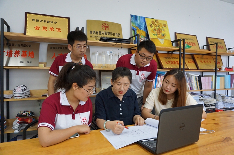 建筑工程系建筑装饰专业的2名指导教师和6名同学以“要么不做,要做就要做到最好”为团队宗旨,以“国赛一等奖”为团队目标,每天7点20分跑操,8点到机房画图到下午1、2点,吃过午饭小憩一会儿,下午4点复核计算到深夜,几乎从未间断。8个月的时间里,80余套图纸,从一周一套图,到三天一套图,一天一套图,再到最后的5个小时一套图,速度、专业、精确度的不断提升,这支“强悍”的队伍以实际行动展现着青春该有的模样。