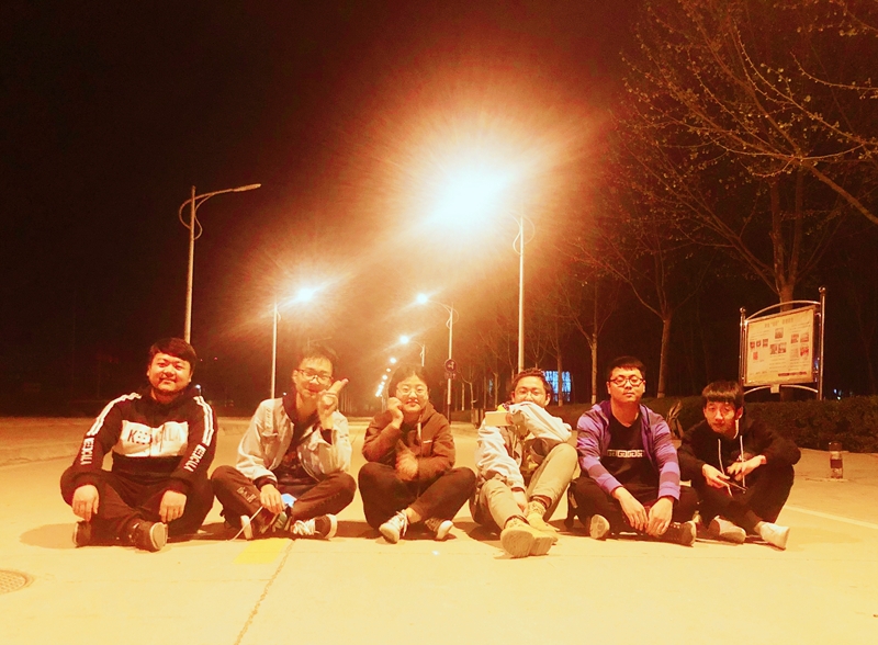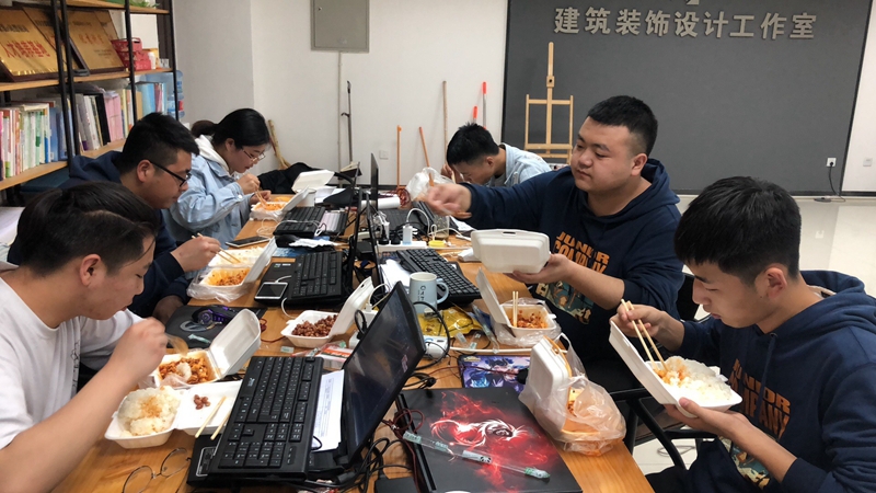 因为训练时间紧,他们常常不自觉的画图到深夜十一二点,好几次被锁在了办公室,大家无奈学会了开锁,保安知道后对门进行了二道防锁,但同时也默许他们探秘到了值班通道。宿管阿姨也从一开始的晚归训斥,到后来的无声“刷脸”开门,大家笑谈享受到了校园深夜的VIP待遇。