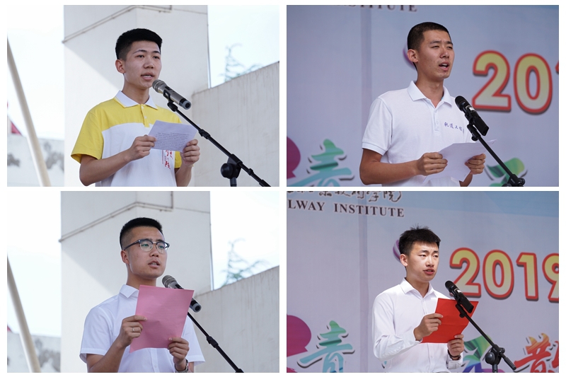 机械3172班秦邓阔、轨道3171班张浩作为在校生代表为毕业的学长学姐送上最真挚的祝福,他们表示将以学长学姐们为榜样,用正确的价值追求、扎实的理论基础、过硬的专业技能,做企业欢迎的下得去、留得住、用得上、干得好的技术技能人才,成为建设祖国的铁院力量。