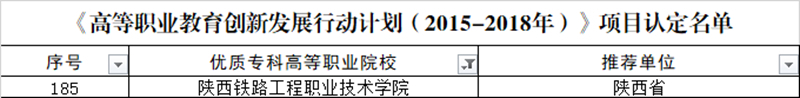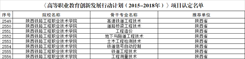 近日,教育部公布了《高等职业教育创新发展行动计划(2015—2018年)》项目认定结果,学院优质专科高等职业院校、骨干专业、生产性实训基地、“双师型”教师培养基地、应用技术协同创新中心、技能大师工作室等17个项目通过教育部认定,认定项目数位居陕西第三。