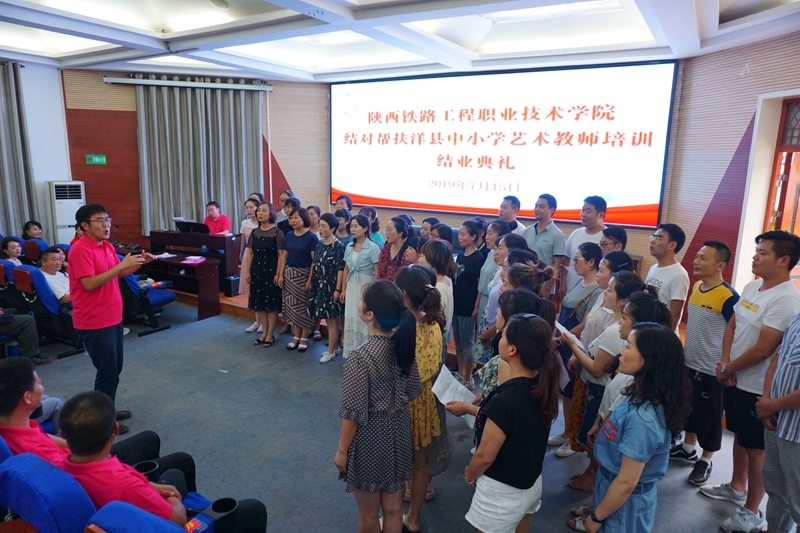 7月14日上午,学院结对帮扶洋县中小学艺术教师培训班开班仪式在洋县南街小学开班。洋县教体局副局长张晓民、洋县教师进修学校校长王元新,洋县教体局扶贫办主任刘龙新,学院艺术教育中心主任侯峰出席会议,学院艺术教育中心7名教师及洋县中小学120余名艺术教师参加开班仪式。