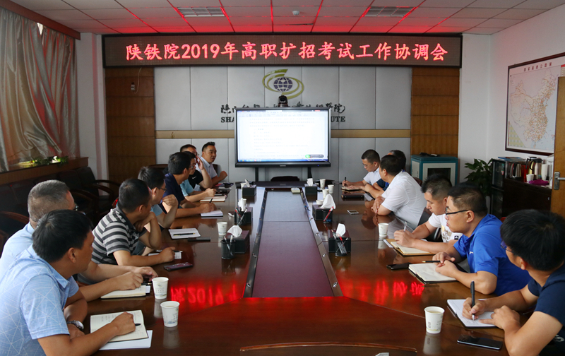 8月25日上午,学院在临渭校区11楼会议室召开2019年高职扩招考试工作协调会,学院副院长李林军、蒋平江出席会议,党政办、党委宣传部、纪委办、安保处、后勤处、招生办、教务处等部门负责人参会,会议由李林军主持。