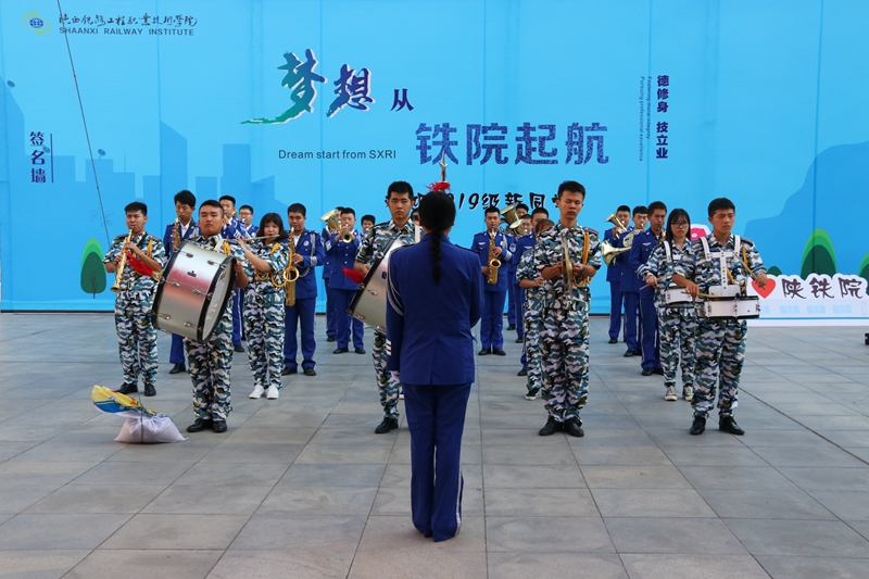 迎新现场,交响乐团铿锵有力的乐曲、广场上形态各异的喷泉、憨态可掬的人形玩偶等等都营造了浓厚了迎新氛围。各系部还结合系部特色开展各类迎新活动,不仅丰富多彩,更是亮点多,铁道工程系威风锣鼓队表演气势磅礴,慷慨激昂;管理工程系礼仪操、大秧歌、健身舞循环上阵,给新生和家长留下美好的第一印象。现场志愿者们的热情周到、学生社团的多姿多彩、护校队的英姿飒爽,更是展现了当代大学生朝气蓬勃,意气风发的精神风貌,赢得在场大批新生及家长的赞叹。