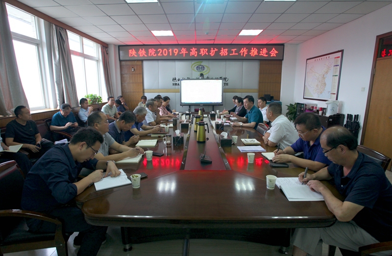 9月11日上午,陕铁院2019年高职扩招工作推进会在临渭校区11楼会议室召开,学院院长王津,党委副书记车绪武,党委副书记、纪委书记杨云峰,党委副书记焦胜军,副院长李林军、蒋平江出席会议,各院(系)、职能处室负责人参加会议。会议由李林军主持。