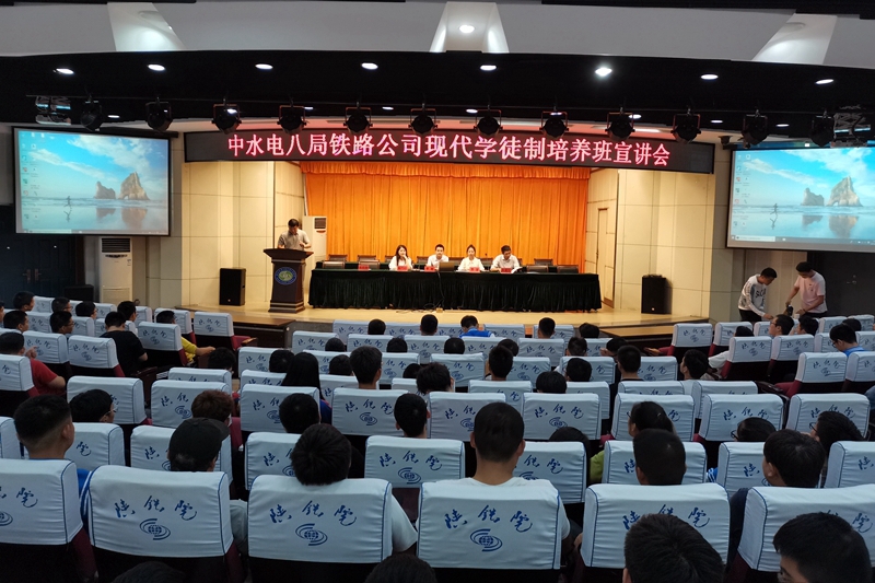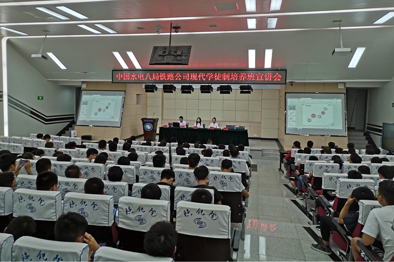 根据校企双方联合制订的《中国水电八局铁路公司地铁盾构专业人才定向培养方案》,9月11日,中国水利水电第八工程局有限公司铁路公司现代学徒制人才培养宣讲会分别在学院高新校区诚信厅和临渭校区学术报告厅举行。中国水电八局铁路公司盾构分公司党委副书记、纪委书记、工会主席肖巧红,团委书记易溢,人力资源部李康和学院校企合作处、轨道工程系、机电工程系相关部门负责人出席,来自轨道工程系、机电工程系2018级400余名学生参加了宣讲活动。
