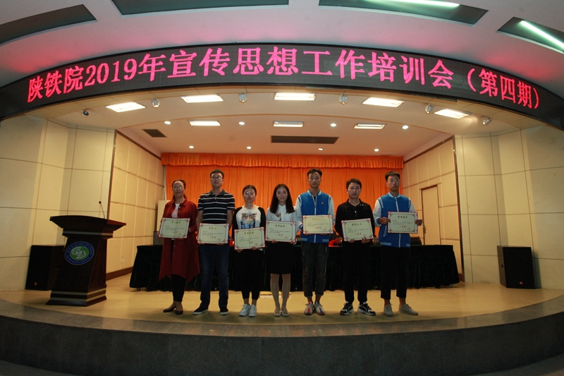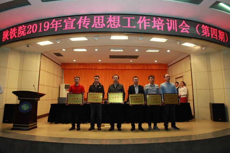 大会第一阶段对宣传思想工作先进个人进行了表彰,党委组织部部长郑毅刚宣读了《关于表彰首届新媒体作品设计大赛获奖作品的决定》《关于表彰2019年教师节征文获奖作品的决定》《关于表彰第六届“最美陕铁院”之“铁院之春”“铁院之夏摄影大赛获奖个人的决定》,与会领导和嘉宾为获奖集体及个人进行了颁奖。张玉鹏回顾了2019年上半年学校和各部门围绕宣传思想文化方面开展的主要工作、特色工作,并就近期宣传思想工作进行了安排及部署。
