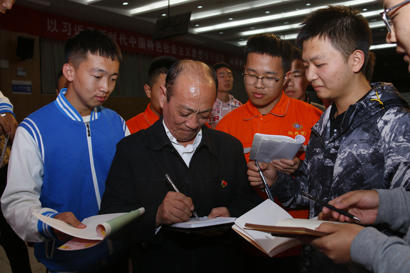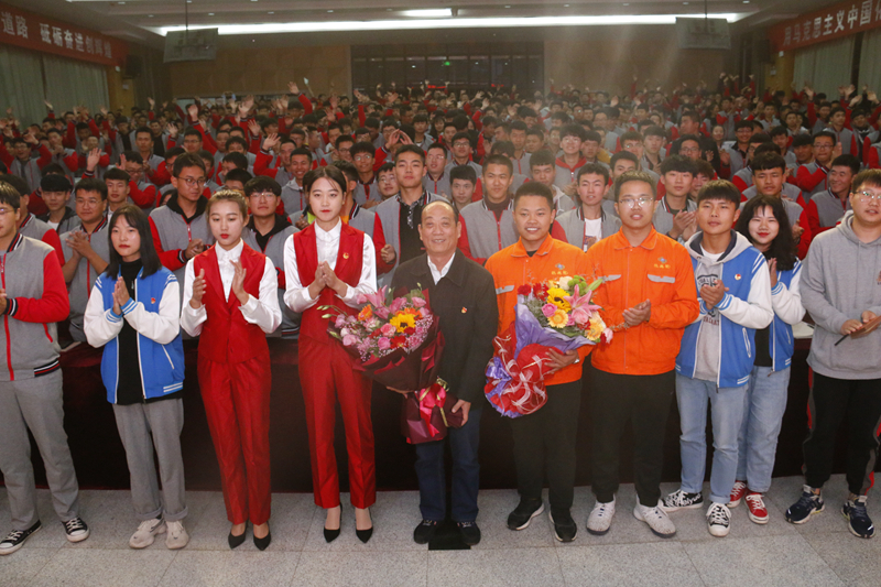 “奋斗的青春最美丽”——窦铁成事迹报告会于2019年10月9日下午4时30分准时召开,当窦铁成迈着矫健的步伐进入会场时,全体师生报以雷鸣般的掌声表示欢迎,学生代表送上亲手扎制的鲜花,向心中的偶像表达敬意。