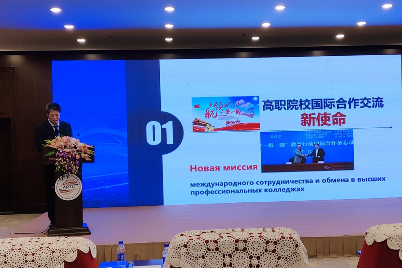 会上,王闯应邀作了题为“深化国际合作交流内涵,服务中国‘一带一路’倡议”的主旨发言,他介绍了学院中俄合作办学及对外技术培训现状,并表示学院将继续加强与国内外院校、企业合作,坚持“走出去,引进来,跟上去”三步走举措,扎实推进学院国际化办学,响应“一带一路”倡议,助力中国企业“走出去”。与会期间,王闯还同其他交通类高校领导进行了交流、研讨,为学院在俄罗斯等国家开展国际合作交流奠定了良好的基础。