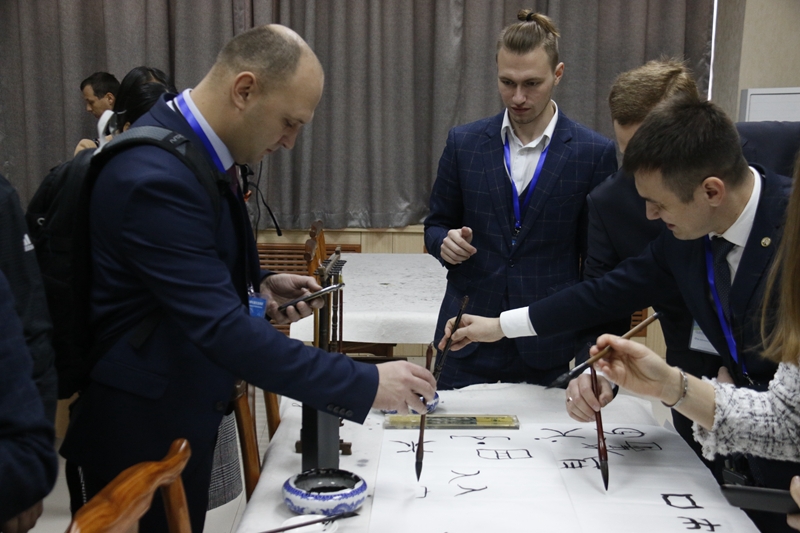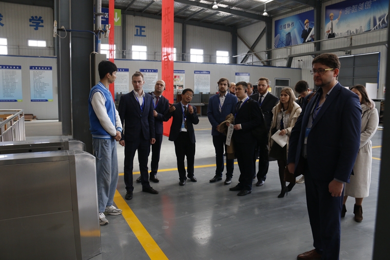 王闯、刘邵安、张晓锋、张力等领导代表学院及地方向外宾的到来表示热烈欢迎,向来宾介绍了学院及地方历史、文化传统、专业特色、国际交流、合作办学、创新创业等情况,希望双方以本次活动为契机,观摩出火花,交流出友谊。叶甫盖尼•科罗别伊尼科夫对活动的精心安排表示衷心感谢,并对学院深厚的职业教育实力和壮观的校园建筑特色高度认可,表示会抓住观摩机会,全面了解学院,在交流中加深互信。