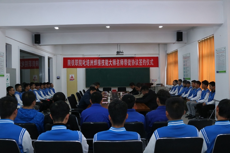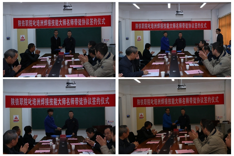 10月25日下午,学院叱培洲焊接技能大师名师带徒协议签约仪式在学院临渭校区S206举行。陕西省教科文卫体工会主席陈建树、副主席陈鹏、副主席唐煜弢,学院党委副书记车绪武,三秦工匠、技能大师叱培洲出席了仪式,机电系教师代表和学生参加了仪式。系党总支书记刘艳明主持会议。会上举行了签约仪式,叱培洲大师作表态发言,学院院教师代表王超和徒弟代表成飞分别发言。