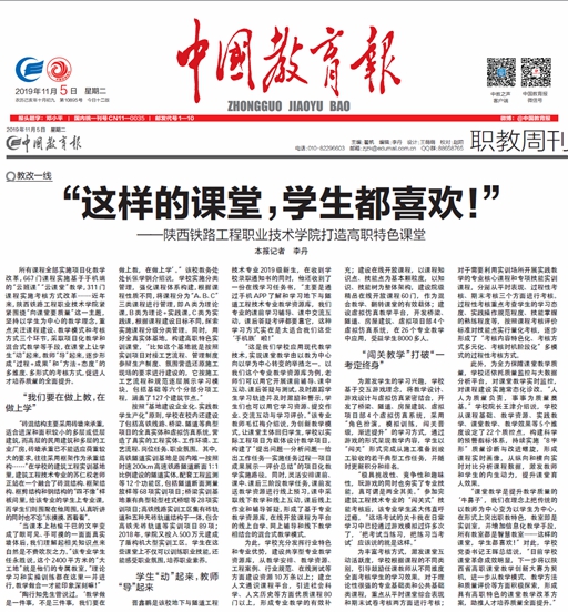 11月5日,《中国教育报》第11版以“这样的课堂,学生都喜欢!——陕西铁路工程职业技术学院打造高职特色课堂”为题,大篇幅报道学院课堂教学创新成果。
