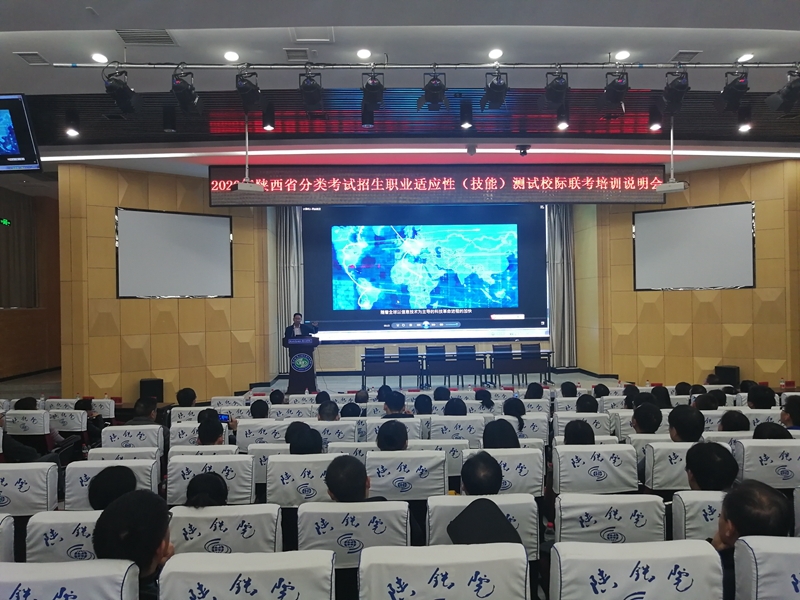 为进一步推进我省高职分类考试招生制度改革,做好2020年高职院校分类考试招生工作。11月15日下午,陕西省2020年分类考试招生职业适应性(技能)测试校际联考(以下简称“校际联考”)培训说明会在我院高新校区博爱厅召开。省教育厅学生处副处长刘万斌,省教育考试院高考处副处长封辉、调研员方培兵,学院院长王津、副院长李林军,及省内19所高职院校主管院领导、教务及招生部门负责人、校际联考专业类负责人等共120余人参加会议。会议由学院副院长李林军主持。