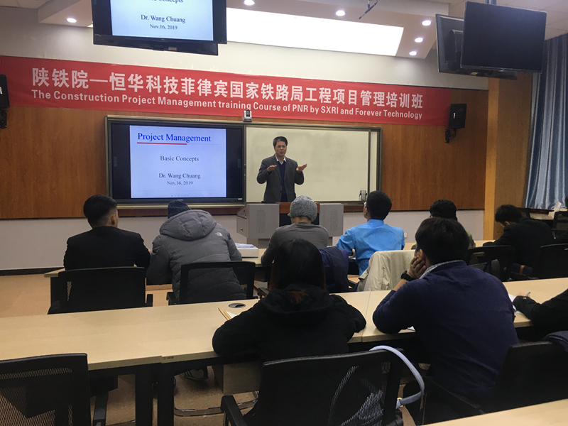 11月22日,由学院和北京恒华伟业科技股份有限公司(下文简称恒华科技)联合举办的首期“菲律宾国家铁路局工程项目管理培训班”结业典礼在高新校区A1楼教师教学培训室举行。学院党委书记王晖,副院长王闯,国合处、教务处、创新学院、继续教育部、铁道工程负责人,任课教师代表和恒华科技国际事业中心经理杜明亮等出席了结业典礼。