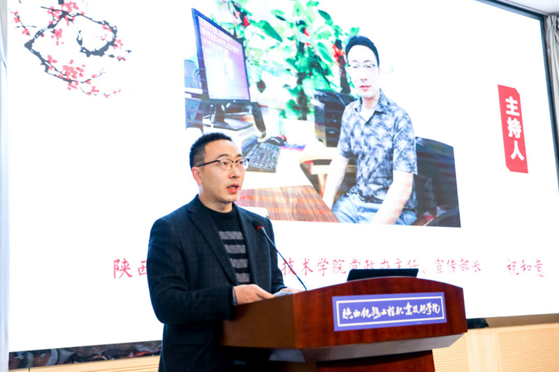 学院党政办主任、宣传部长祝和意主持主题报告