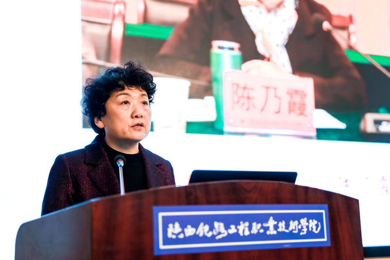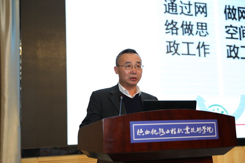 陕西省委教育工委副书记陈乃霞出席会议并讲话, 她对研讨会的举办表示祝贺,对陕铁院在网络思想政治工作中取得的成绩给予了肯定。她简要介绍了陕西高等教育基本情况,她讲到,近年来,陕西认真学习贯彻习近平总书记和党中央决策部署,把网络思想政治工作摆在突出重要位置,努力建好用好管好互联网,推动思想政治工作传统优势同信息技术高度融合,既会“面对面”,又能“键对键”,主要做到以下几个方面:一是守好网络意识形态“生命线”,二是占牢网络思想政治工作“主阵地”,三是繁荣网络文化“百花园”,四是构建网络思政“新格局”。