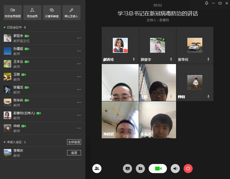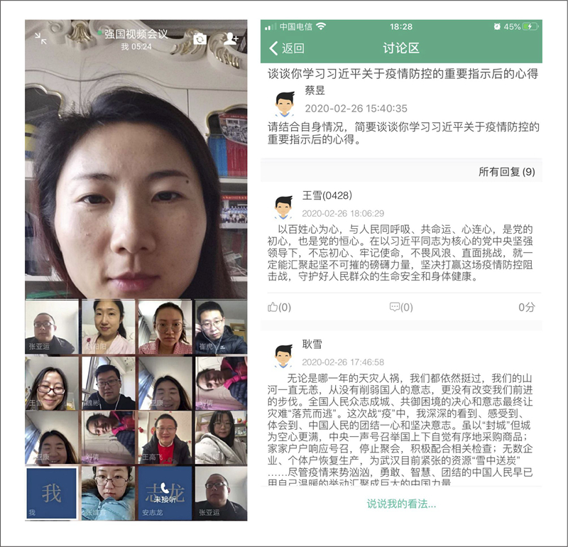 会议采用云班课发布相关学习文件和QQ群课堂投屏学习等形式展开,通过头脑风暴和讨论等活动表达学习心得和做好防疫期间工作的决心。(赵阳阳)