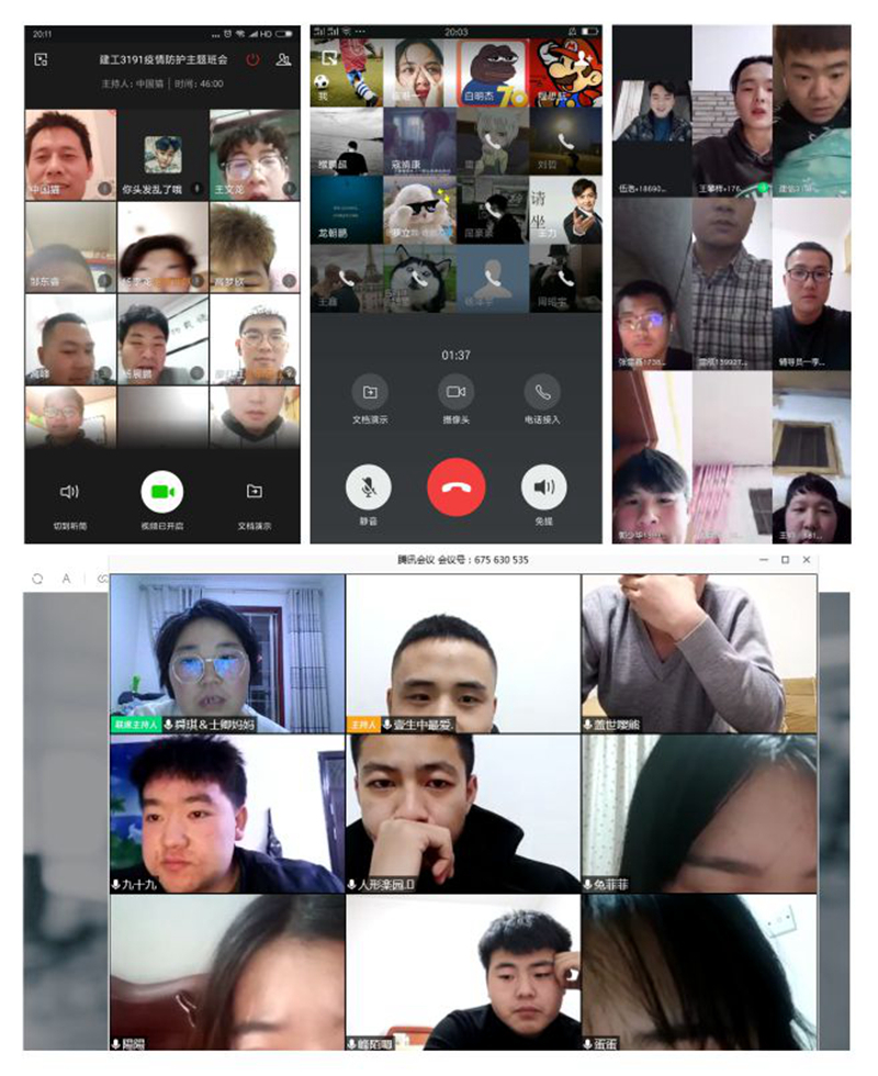 为了进一步加强新冠肺炎疫情期间学生思想政治教育和引导,及时向学生宣传有关疫情防控常识,传达中省及学院有关要求,同时帮助学生适应线上学习模式,尽快调整状态投入紧张的学习和生活中,按照陕铁院学(2020)6号文件要求,3月2日晚,建筑工程系组织各班级召开“新冠肺炎防控”线上主题班会,系部全体辅导员、班主任与学生在线上进行了长达1个多小时的互动,达到了班会预期效果。