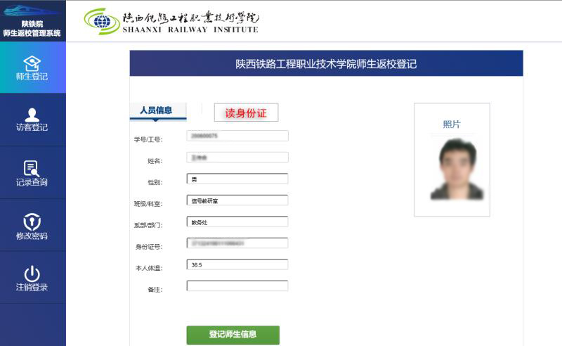 为有效解决学生返校和体温登记问题,学院领导、保卫处、学生处会同信息化建设与管理中心多次通过电话、远程会议的方式测评了市场上的多种解决方案。经评测,目前主流的摄像机红外测体温受环境干扰大,无法室外部署,而且造价成本高,无法进行快速登记和记录,不能较好的满足高并发学生返程要求。为此,学院各部门协同发力,创新的提出了适合高校特色的解决方案,由信息化建设与管理中心自主开发了基于一卡通系统的师生返校管理系统,成功的解决了疫情后学生返程和管理的难题。