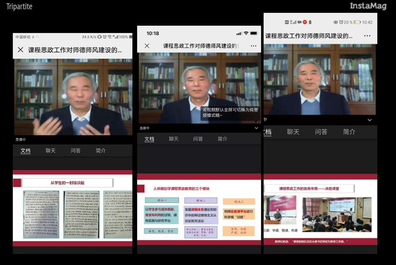3月27日上午,学院各系部分别组织全体无课教师通过腾讯会议观看“师德大讲堂”第一期网络直播课。