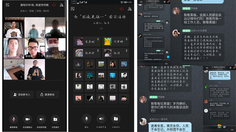 在各系团总支组织下,陕铁院青年学生们分别以网上祭拜和写心得体会的形式,表达了对革命先烈的怀念之情。对在抗击新冠肺炎疫情中牺牲的白衣天使和逆行者的敬仰和感激之情。各系以班级为单位,上午10点整,通过qq群、企业微信视频等渠道向抗击新冠肺炎疫情斗争牺牲烈士和逝世同胞们默哀3分钟。