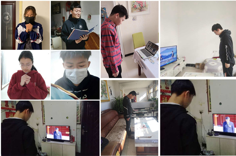 同学们向抗击疫情牺牲烈士和逝世同胞们默哀