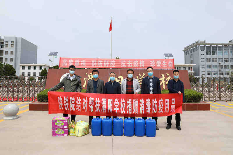 4月20日,学院党委副书记、工会主席车绪武带队一行5人赴临渭区渭阳学校捐赠消毒液、酒精、口罩、电子体温计、方便面等价值1万元防疫物资。