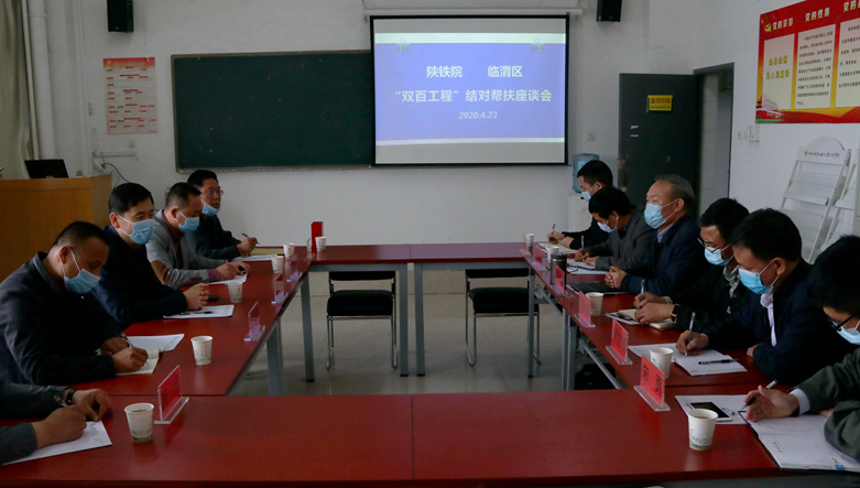4月22日下午,学院与临渭区“双百工程”结对帮扶工作座谈会在临渭校区十楼A1004会议室召开。学院党委副书记车绪武,临渭区教育局副局长李学斌一行5人,学院教务处、校企合作处(就业指导中心、校友工作处)、继续教育部、餐饮中心、扶贫办等部门相关负责人参加座谈会。会议由扶贫办公室副主任宋勇主持。
