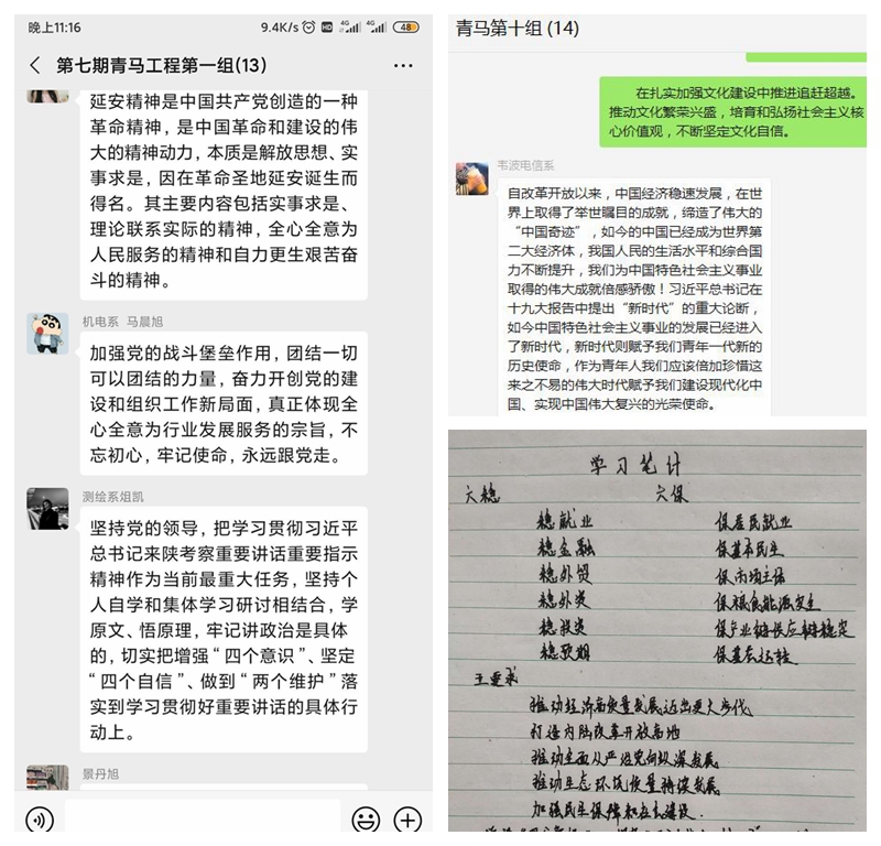 “五四”青年节期间,学校团委组织各团学组织开展了“绽放战役青春·坚定制度自信”主题宣传教育实践活动,同时,号召第七期青马工程培训学员、团学干部以PPT讲解、新闻学习、分组讨论、视频交流等形式,深入学习习近平总书记陕西考察重要讲话重要指示。