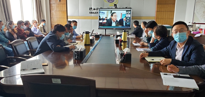 学校党委组织部、人事处、科技处、国合处、质量管理中心等职能部门负责人、八个二级学院负责人及骨干教师在学校临渭校区11楼会议室分会场参加了视频研讨交流。(刘斌)