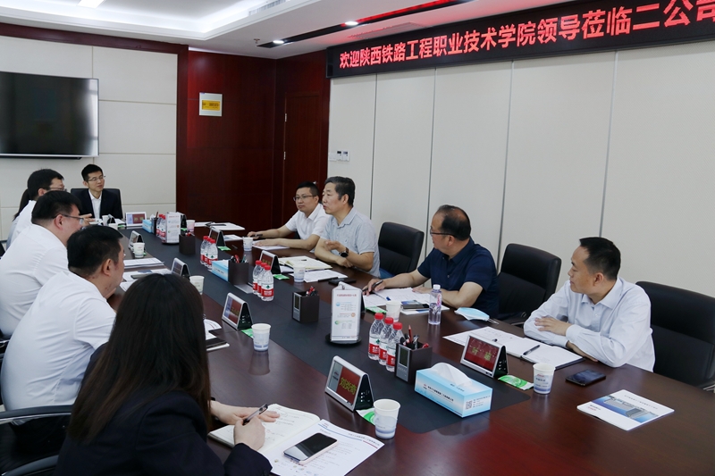 5月15日上午,焦胜军一行来到中铁十七局集团第二工程有限公司,二公司执行董事、总经理、党委副书记王林俊,纪委书记、工会主席张斌出席会议,陕铁院校友、公司党委组织部部长朱水林,陕铁院校友、京新项目经理部经理王小伟参加了座谈会。人力资源部部长卢震林主持会议。王林俊对陕铁院给予高度评价和认可,认为陕铁院毕业生吃苦肯干,学校为企业培养了企业需求、社会需要的人才。焦胜军介绍了学校“双高”建设情况,双方人员就人员互聘、科研技术服务、学生培养等校企合作事宜进行了深入探讨。