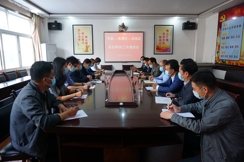 5月14日,陕铁院高校结对帮扶工作推进会在洋县职教中心召开。校党委副书记车绪武、扶贫办副主任宋勇、基础课部语文教研室苏金玲、张红,渭南市临渭区教育局副局长李学斌、成教办主任关斌、扶贫办副主任陈林、渭南幼儿师范学校校长赵良东一行9人参加活动。洋县副县长虞文龙、洋县教育局局长王志峰等相关负责人参加会议。