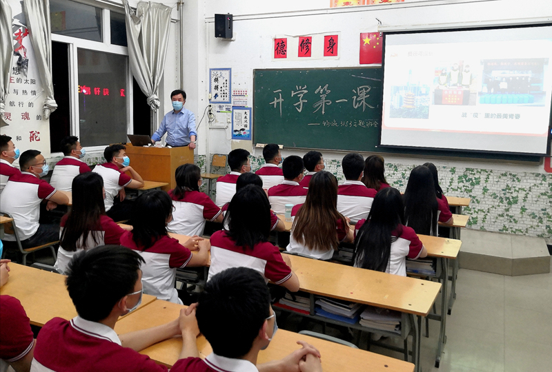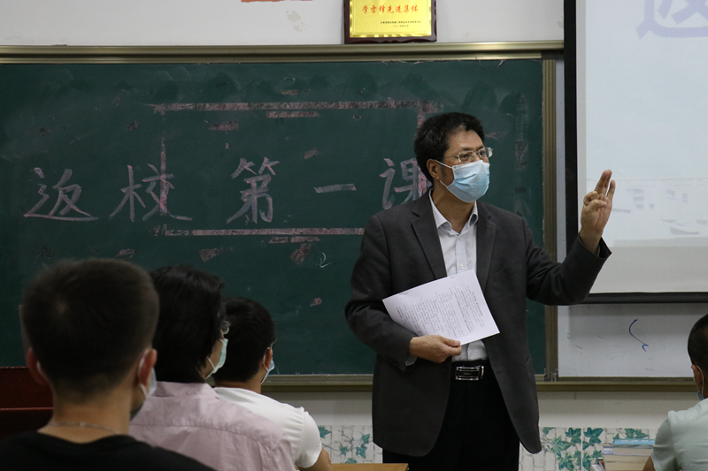 复学第一课上,学校处级干部也组成了宣讲团深入各班为学生上了一堂防疫知识宣讲课。他们围绕有序推进教学课程、全面保障防疫食寝工作、做好学生心理健康教育、加强学生防疫意识和注重学生思政教育等多个方面与学生畅谈, 引导青年大学生要在这场疫情中“知国、爱国”,增强中国特色社会主义制度自信,努力学习科学文化知识,用奋斗的青春担当民族大任,实现报国之志。