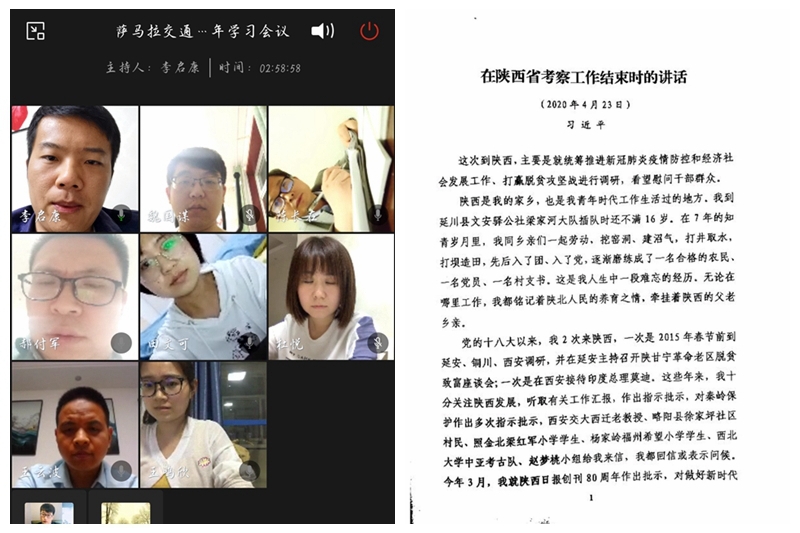 萨马拉交通学院直属党支部利用企业微信在线组织党员同志专题学习习近平总书记来陕考察重要讲话精神,王云波院长带领与会师生学习习近平总书记《在陕西省考察工作结束时的讲话》重要精神,为大家解读了习近平总书记对于陕西谱写新时代追赶超越新篇章提出的5点工作要求,传达了学校领导干部专题学习习近平总书记来陕考察重要讲话精神的有关情况。他结合学校“双高”建设推进的最新情况,针对国际合作交流工作如何贯彻落实习近平总书记来陕考察重要讲话精神,融入“一带一路”以及“打造内陆改革开放新高地”发展大局,提出了具体设想和举措。(李启康)