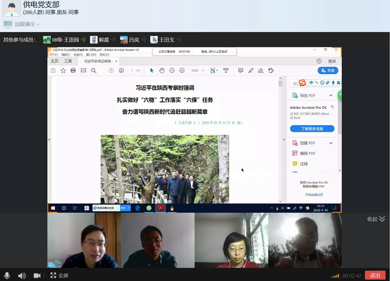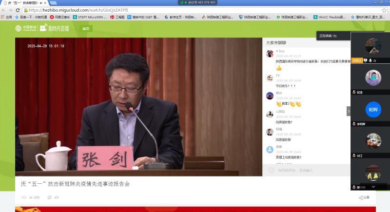 高铁分会组织教职员工开展线上学习活动,集中学习习近平总书记来陕之行重要讲话精神和给郑州圆方集团回信内容,以及陕西省总工会庆“五一”抗击新冠肺炎疫情先进事迹报告会。广大教职员工特别是党员同志深入贯彻学习习近平总书记来陕考察和关于新冠肺炎疫情防控工作的重要讲话和指示批示精神,学习宣传疫情防控一线工作者们坚守阵地、不畏风险、履职尽责的感人事迹,激励学院教职员工勇于担当,无私奉献,做好本职工作。(杨志鹏)