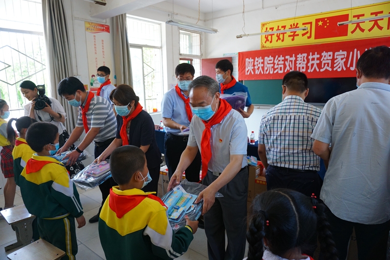 活动中,临渭区教育局邢唯远致欢迎词,他代表临渭区教育系统和在场全体师生对陕铁院党委副书记车绪武一行的到来表示热烈欢迎,对学校爱心捐赠表示衷心的感谢。活动现场,嘉宾们为孩子们捐赠了书包、文具等学习生活用品。阳郭镇贺家小学的少先队员们为嘉宾们佩戴了红领巾。临渭区副区长张占权在讲话中感谢学校的爱心帮扶和对临渭区教育事业的关心与支持,并表示今后双方将加强沟通和联系,积极推进扶贫工作,把教育扶贫各项举措落到实处。