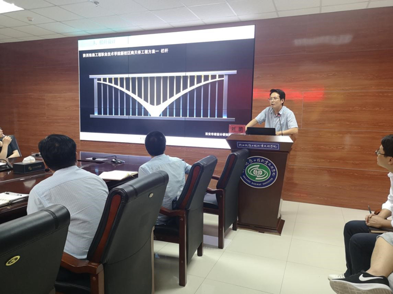 会上,南天桥总设计师,西安市政设计院总工刘鹏针对设计思路、设计方法、施工控制要点等进行了详细讲解,随后校企双方就设计和施工问题深入探讨交流。
