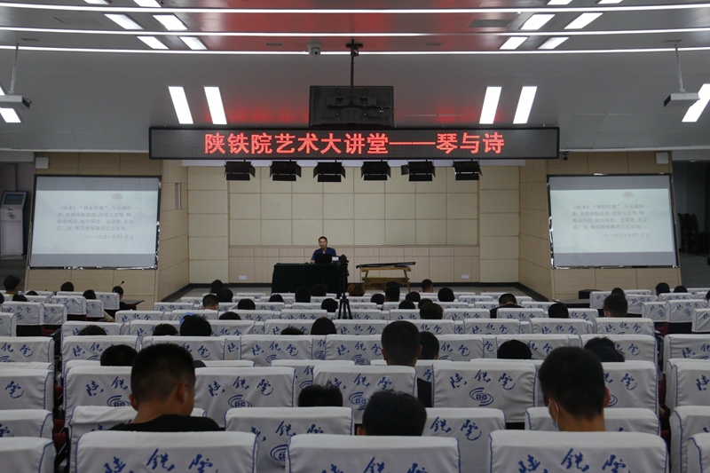 6月11日下午,“琴与诗”传统音乐讲座在高新校区诚信厅举行,九嶷琴派第四代传人朱颖博老师带领同学们走近古琴的世界,欣赏中国传统乐器的独特魅力。伴着悠扬的古琴曲,唐诗文化研究会研究员张立民为同学们吟诵经典。本次讲座旨在通过艺术教育潜移默化,丰富校园艺术氛围,弘扬中华民族传统文化精髓,培育和践行社会主义核心价值观。