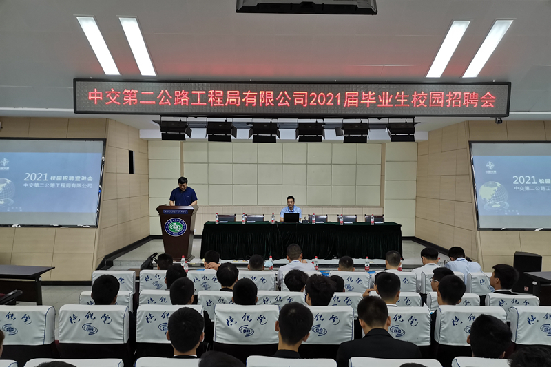 就业是最大的民生。今年以来,受新冠疫情影响,高校毕业生就业工作受到了一定的冲击和影响,面对就业形势异常严峻的局面,学校群策群力,多措并举,坚持“就业一人、幸福一家”的工作理念,不断完善“线上线下联动、一对一精准推动”的就业服务体系,在帮助行业企业选聘和储备技术技能人才的同时,引导和鼓励广大毕业生不等不靠、积极就业,投身国家铁路建设一线施展才能、建功立业,助力铁路建设全面复工复产。为此,学校于6月28日携手中交第二公路工程局有限公司分别在高新校区诚信厅和临渭校区学术报告厅举办毕业生专场校园招聘会,精准搭建用人单位和毕业生的双向选择平台,来自两校区的2020、2021届600余名毕业生参加了招聘会。