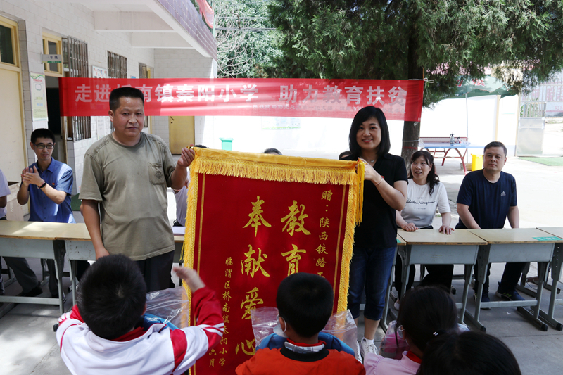 活动小组先后来到桥南镇秦阳小学、花园小学,为27名小学生送去了书包、文具、书籍等学习用品。我校党委副书记车绪武勉励孩子们不要为物质贫乏所困,用功读书,用知识改变命运,努力成为对社会有用的人。渭南市临渭区政协副主席王珺青对陕铁院教育扶贫的做法表示感谢,并向受捐孩子们提出了殷切的希望,她希望受捐赠的孩子们铭记社会对他们的深情关爱,刻苦学习,练好本领,争做对家乡对祖国有奉献的栋梁之才。学校负责人向支部赠送了“教育扶贫 奉献爱心”的锦旗。
