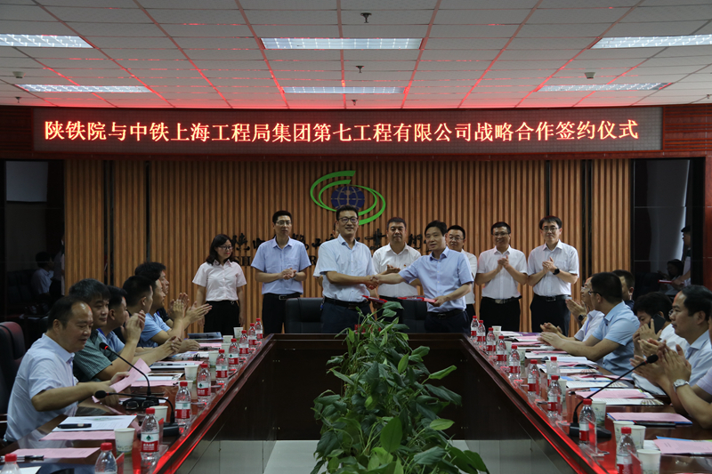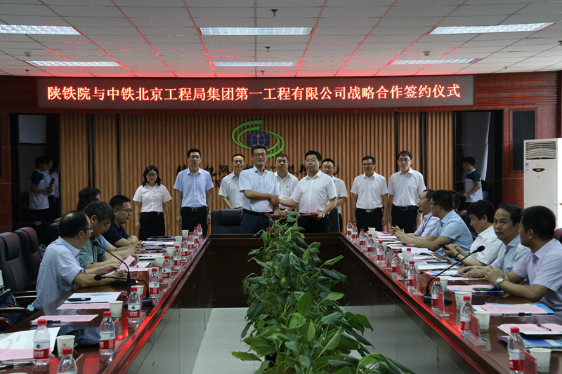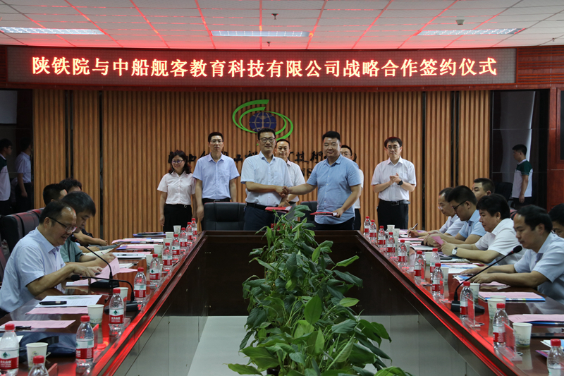 签约仪式上,蒋平江分别与欧阳建国、解博、李兴、王晓龙、徐宏、戍恩亮、胡文龙、张桐、韦晓博代表校企双方签署陕铁院与中铁上海工程局集团第七工程有限公司、中铁十四局集团大盾构工程有限公司、中铁一局集团第五工程有限公司、中铁北京工程局集团第一工程有限公司、中铁一局集团有限公司技术研发中心、广联达科技股份有限公司、深圳市中诺思科技股份有限公司、新道科技股份有限公司、中船舰客教育科技有限公司关于校企合作共建产业学院、技术应用研究中心、职业教育发展研究中心等内容为核心的战略合作协议。
