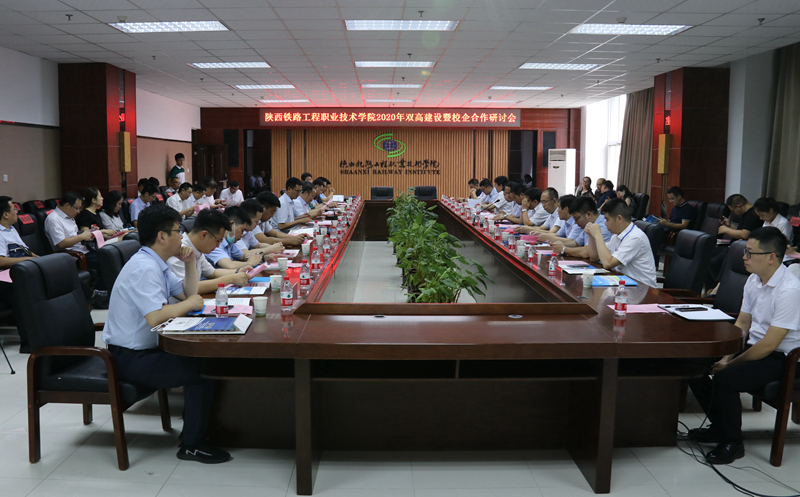 为进一步深化产教融合、校企合作,全方位推进中国特色高水平高职学校建设。7月10日上午,陕铁院2020年双高建设暨校企合作研讨会在高新校区北三楼会议室举行。学校党委副书记车绪武、副校长蒋平江出席会议,各二级学院院长、办公室主任和专业带头人与27名企业嘉宾就人才培养、校企共建、技术服务、员工培训、课题攻关等校企合作项目进行了深入的研讨,会议由校企合作处处长王庆东主持。